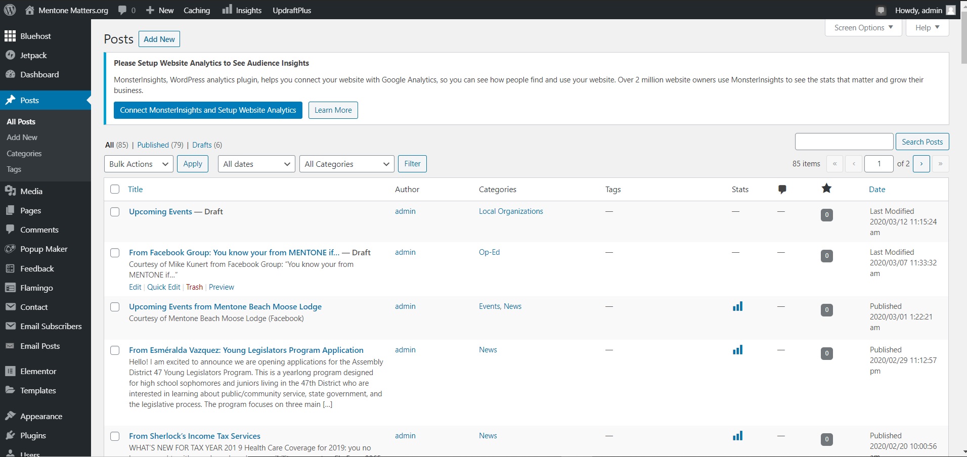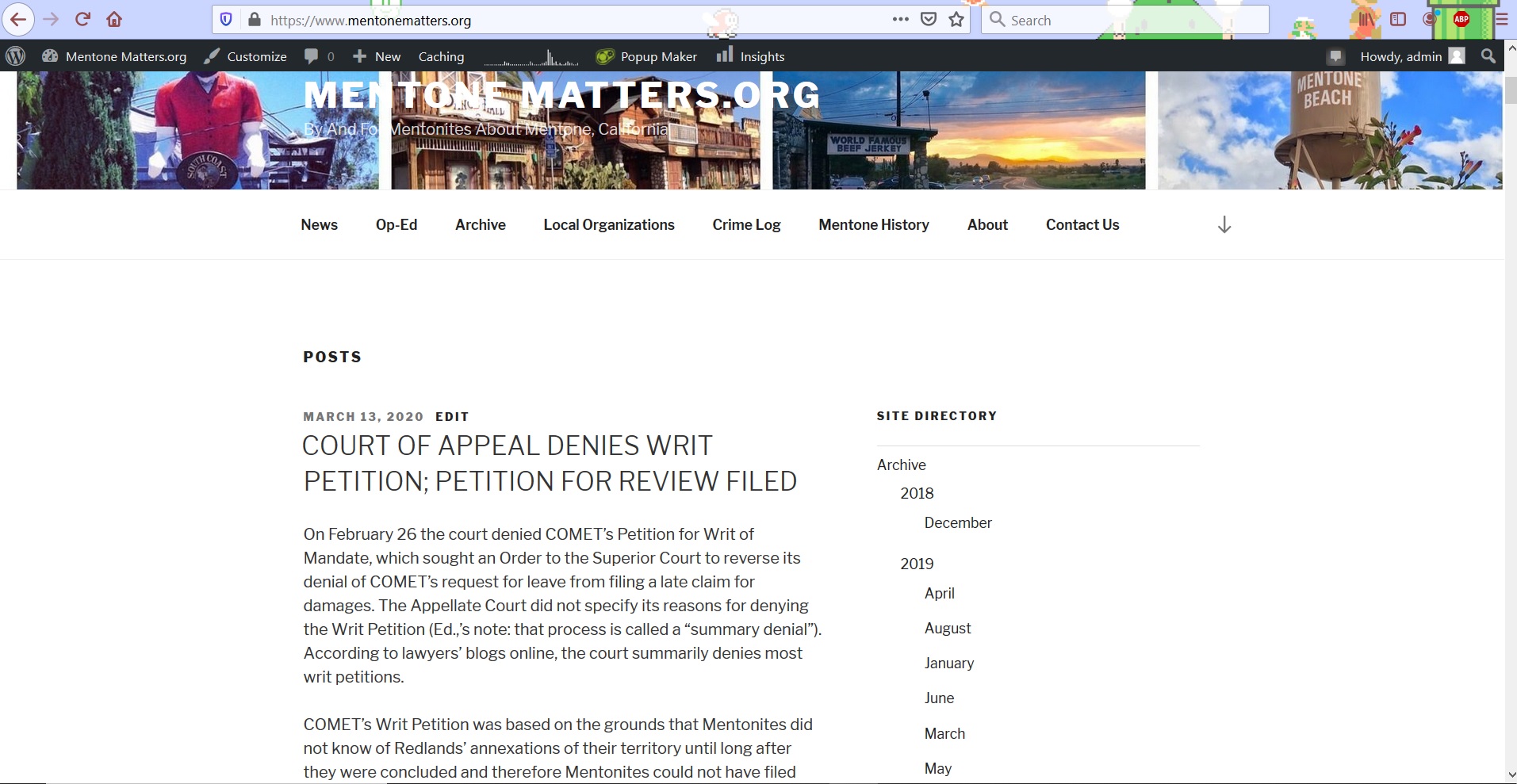 My recent project was from an internship at Crafton Hills College. Worked with a client who works for the city of Mentone in California. Majority of the work was front-end development using HTML5 and CSS3. While working on each post, I made the use of SEO to direct internet traffic into webpage by inputting broad keywords and tag names. Improved email subscriptions and notifications. I even tested the website before publishing new changes to the public.